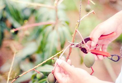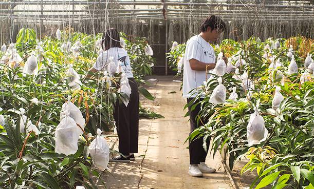 いつでも変わらず美味しく、多くの人にマンゴーを届けられるための品質維持管理も徹底しています。安定した収量、美味しさ、品質を保つため、木の高さを一定に揃えており、そして、開花促進に向けて、時には樹に適度なストレスをかけることも大切。
